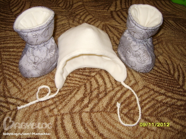 Шитье одежды, выкройки, ремонт одежды, шторы, швейные машины (уже приобретенные)пошились сапожки и шапочка к раннее показанному комбезу. на шапочке, между двумя слоями термоткани, слой синтепона. получилась очень мягенькая и лёгенькая. думаю шапочку не украшать, так как капюшон будет нашим украшением: