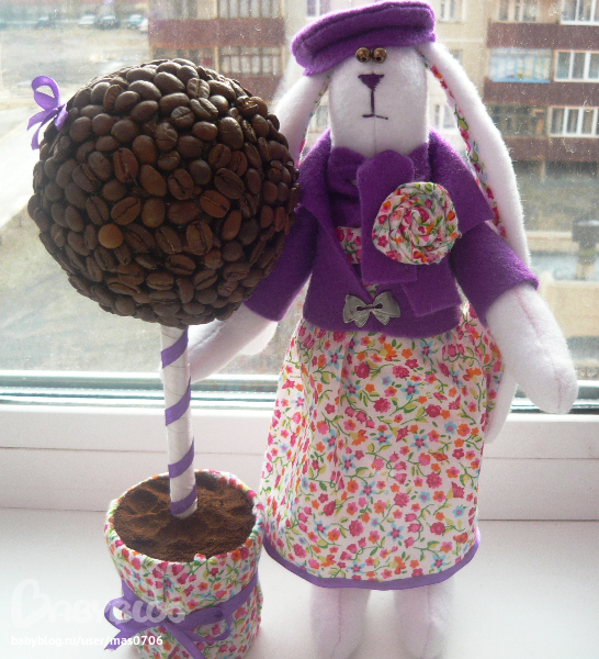 Симпатичная зайка получилась. Только по-моему глазки из бисеринок не очень. Как на выкате получаются. Или может это только на фото так.