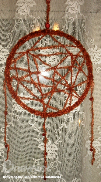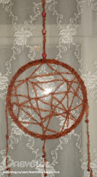 ну вот и я попробовала сделать это, а именно ловец снов ( к сожалению потерялся пост девушки которая помогла это сделать ) если видишь это сообщение огромное тебе спасибо !!!!!!!!!!!!!!!!!!!!!!!!!!!!!!!!!!! ( еще не нашла в городе перьев поэтому делала из того что было ) думаю для первого раза не плохо главное дети в восторге ( теперь будем ловить только хорошие сны)ну вот и фото спасибо что посмотрели