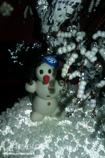 Зимняя сказка. Эдакий гибрид моего "Ледяного" и просто Зимнего... Ну, и плюс Снеговик из бархатного пластика...