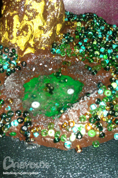 Осеннее. Тут попробовала с помощью силиконового клея создать водоемчик. В натуре - получилось здорово, жаль, что не видно на фото...