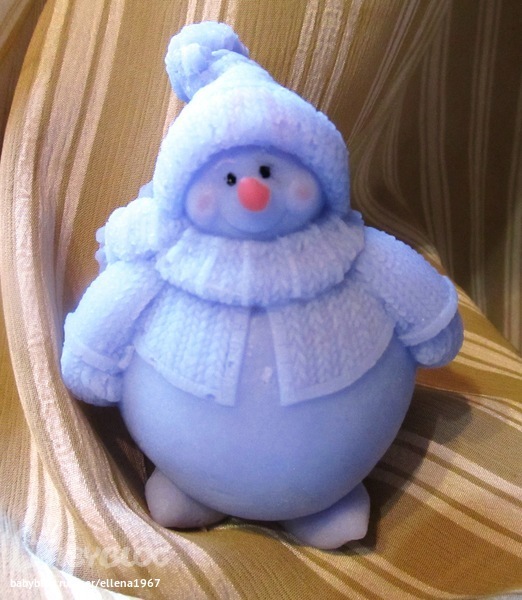 А еще у меня есть необыкновенный снеговик. Вернее был. Уже ушел к подруге. Он сделан их российской кремообразной основы. Когда я стала резать белую Англию с маслом Ши, я заподозрила, что режу совсем не ее. Очень была она похожа на кремообразку. А так как знаю, что в магазине кремообразка только Российская, то решила проверить, что же будет с моим снеговиком. Получился твердый, как и положено Российской кремообразке после нагревания)