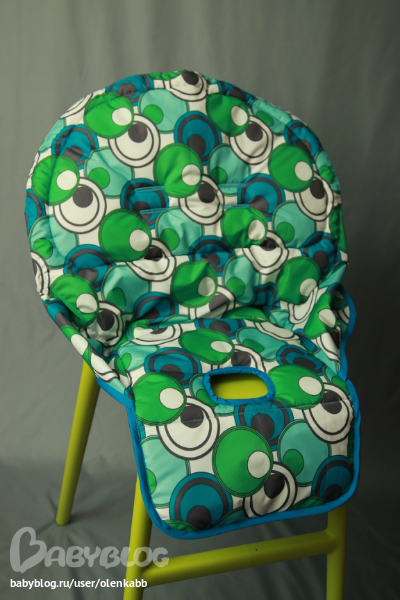 Ух, какие мягонькие наверно) А бейку (или как ее обозвать) тоже сами из плащевки делаете? А еще интересно как они в использовании, у нас просто на стульчике материал какой-то клеенчатый, плотный...
