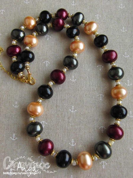 Очень оригинальный браслет получился, сразу вспомнился мультик где дива морская пела песенку и у нее были большие губы "Оставайся мальчик с нами, будешь нашим королем". А на жемчуг и камушки вообще облизываюсь