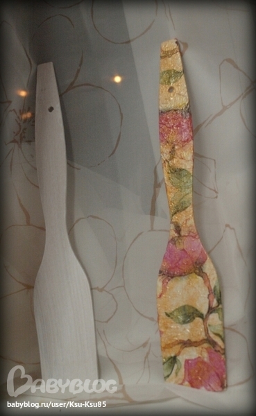 Декупажпосмотрела вчера мастер-класс,сегодня пошла всем закупилась и вот за 10 минут сделала такую лопатку:)