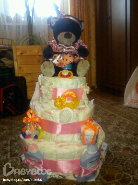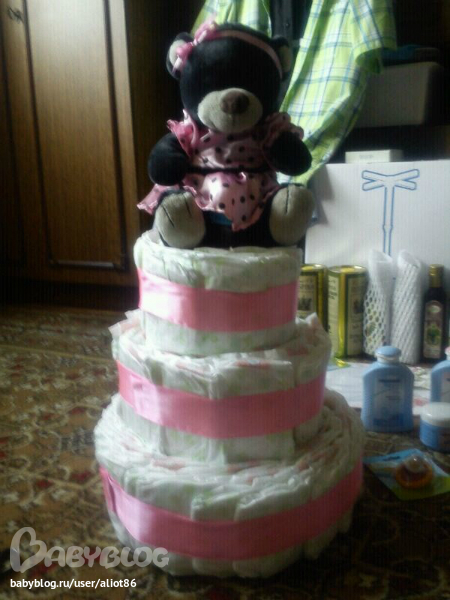 Вера, абсолютно с Вами согласна! Но две последние Ваши фотографии, на мой взгляд- абсолютно недопустимое обращение с предметами гигиены . Я , вчера увидела Ваши фото , и дала Вам ссылку на статью Татьяны, которая профессионально занимается изготовлением подобных подарков, сегодня вот решила и сама написать эту статью, т.к. не первый раз вижу подобные фото. Тут же, на ББ, девушка давала подробный фото МК, как она собирала торт. И что же Вы думаете! Всё было собрано на полу! Ваши тортики замечательные, очень красивые, но поверьте, если мамочка малыша увидит подобные фото, она ни при каких условиях не будет использовать эти подгузники по назначению.Практичность данного подарка сведётся к нулю.