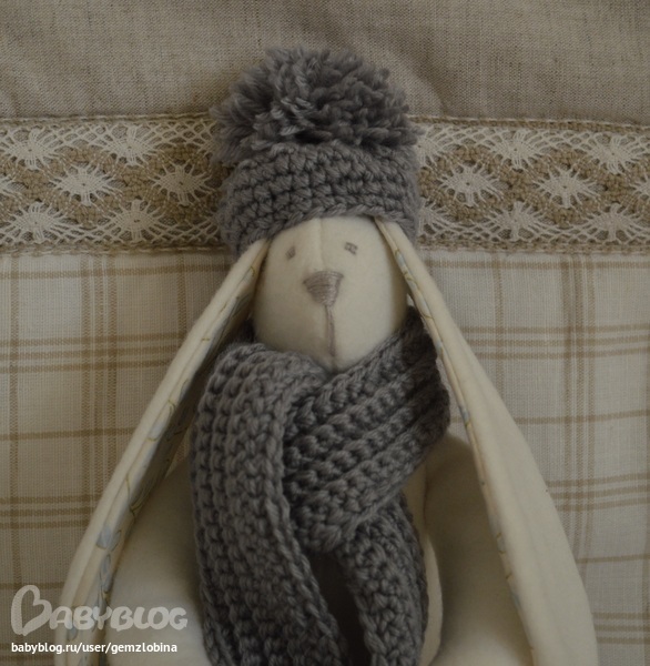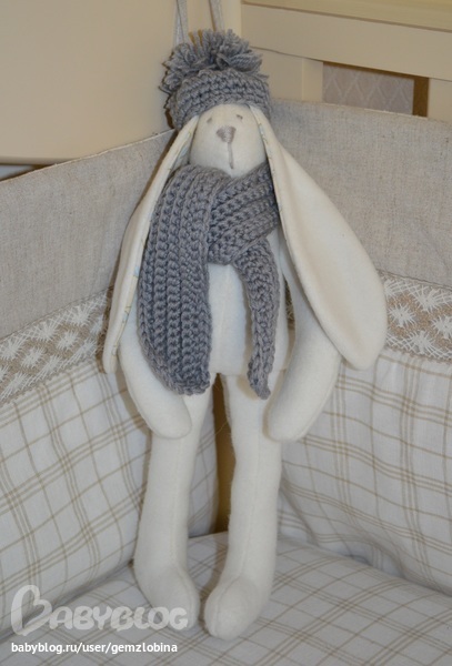 Сам он из флиса. Такой приятненький, мягенький, тепленький. Ушки из хлопка, одежка из "Детского каприза".