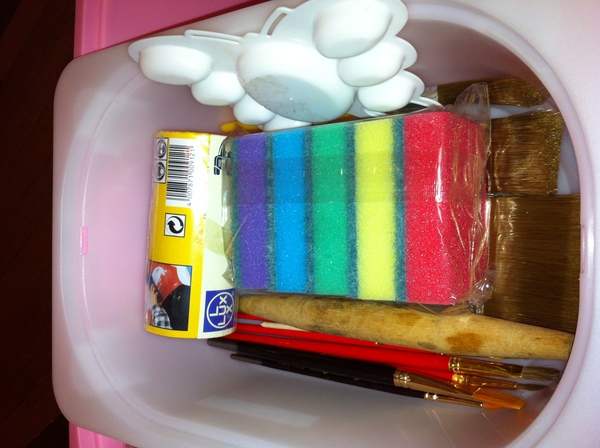 В маленьком ящичке всякие инструменты, кисточки и прочие нужности: