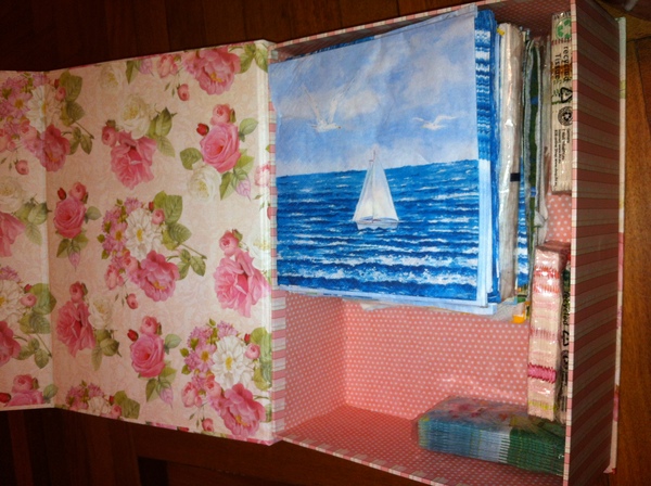 какой порядок)у меня все лежит в огромной коробке от принтера!надо тоже завести красивые коробочки))))а салфетки в подарочных пакетах большого формата!их просто девать некуда)