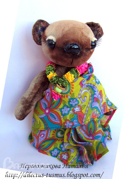 Игрушечный мир - животныеЭто моя очередная мишка из индийской серии. Зовут ее Мира, что в переводе с хинди означает "преуспевающая". Она и впрямь все успевает и преуспевает. Мира - современная женщина в самом расцвете сил. ))))) Одета она в сари, а на груди красуется цветочная гирлянда. )))