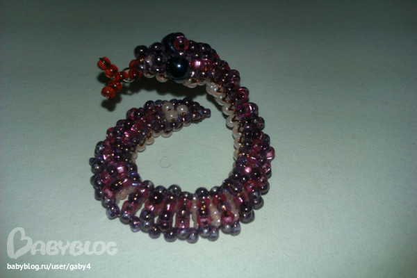 Бисер. Бисероплетение. Украшения из бисера.Продолжаю цикл своих Малявок. И не могла даже и подумать, что Золотая Рыбка вызовет такой ажиотаж и на нее в момент выстроится очередь))) Итак, сделала красненькую ну и разработала простенькую схемку змейки, талисмана наступающего года. Итак...