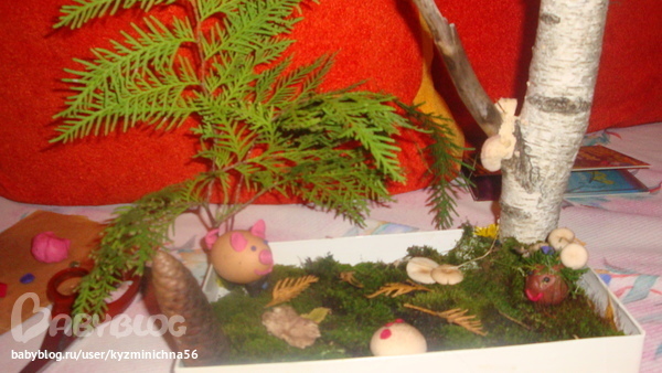 Поделки с детками.Добрый день всем, прошу вашей помощи вчера в детском саду попросили сделать поделку из природного материала но я не могу ничего придумать буду рада любому совету.Спасибо!!!