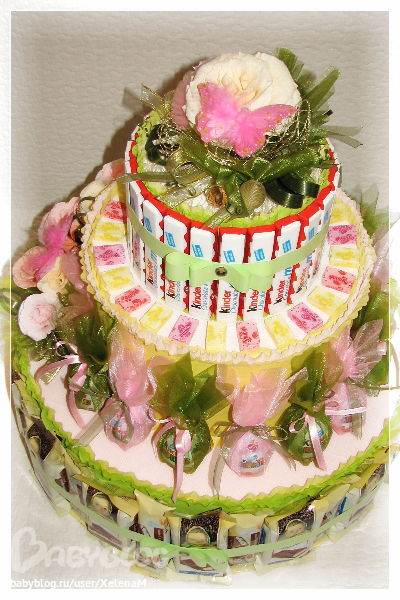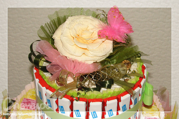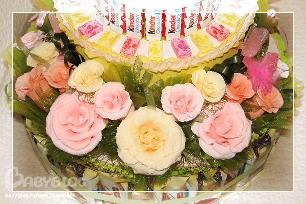 , мама именницы пыталась розы спасти, хоть не на долго, но у неё ни очень получилось, ну и на здоровье , для них же было сделано, зато довольные были все в шоколаде и с розой в ручке! А размер его где -то 55 на 55см.