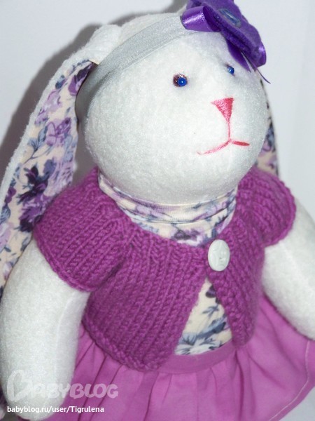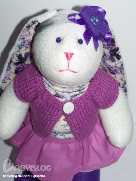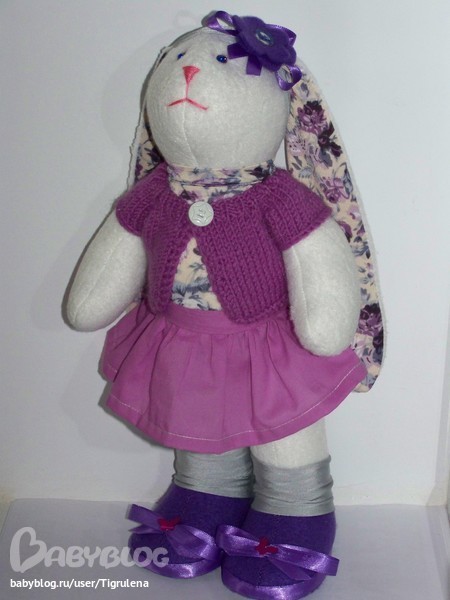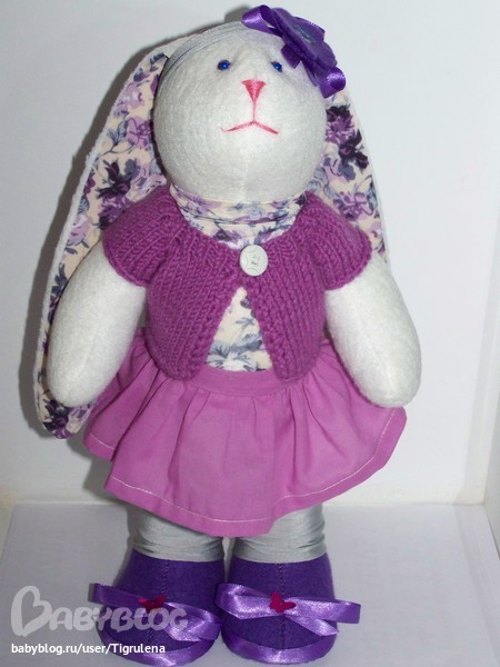 Зая получилась довольно упитанной, мягенькой девочкой в сиренево-фиолетовых тонах.