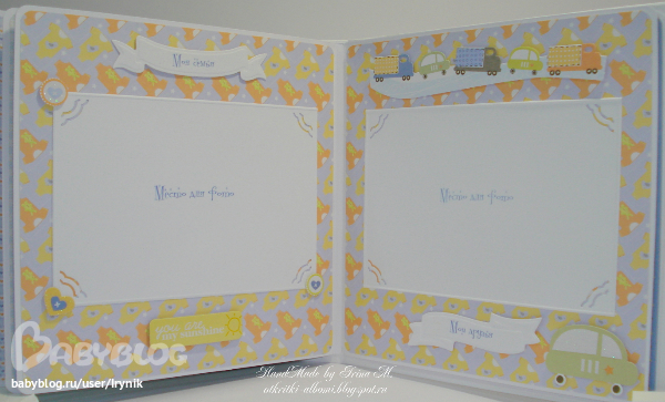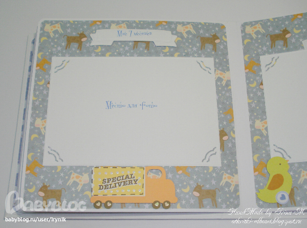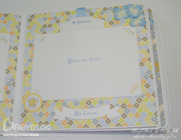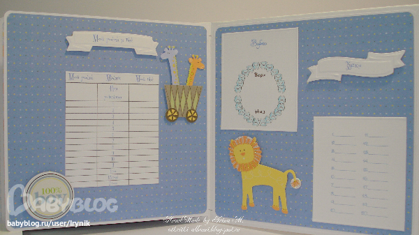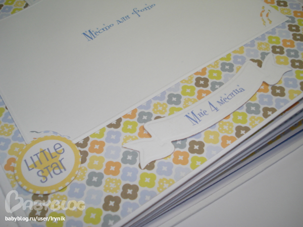 достижений малыша. В конце альбома собраны все данные о малыше: рост, вес, зубки. На титуле есть место для вставки фото.
