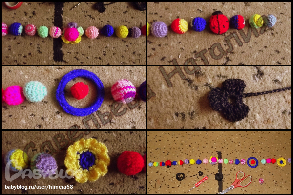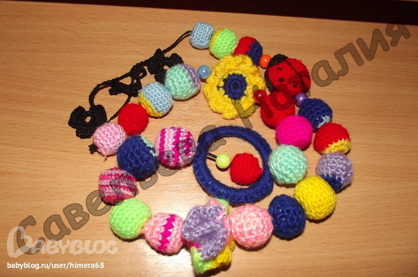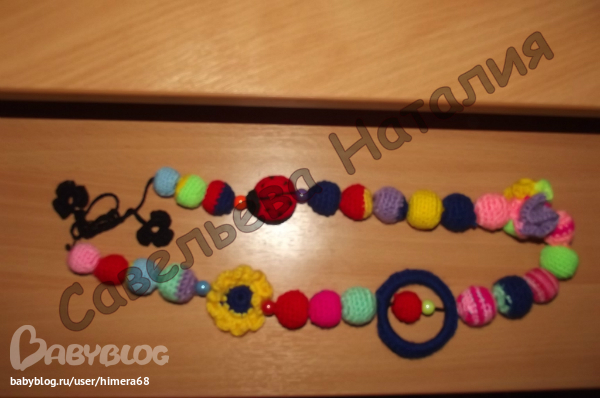 Теперь просто так лежать на ручках нам уже не интересно, нужно всё разглядеть, подергать за всё, до чего только пальчики дотянутся… Вот и задумала я для своей непоседы связать бусы, чтобы во время кормления её внимание ни на что больше не переключалось. Подробности творческого процесса под катом)))