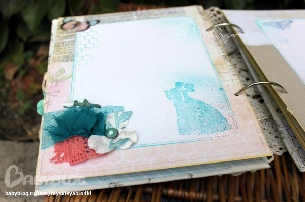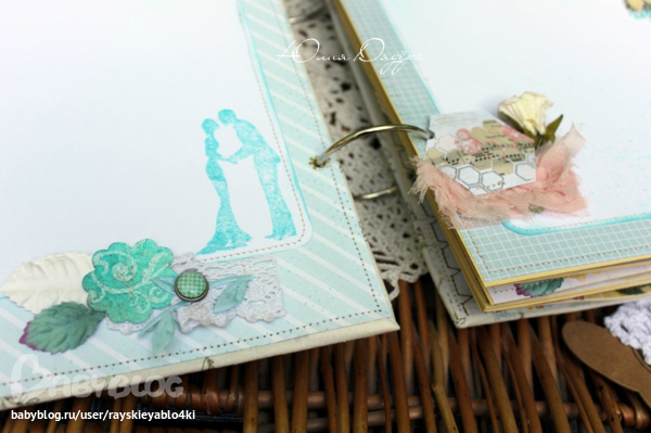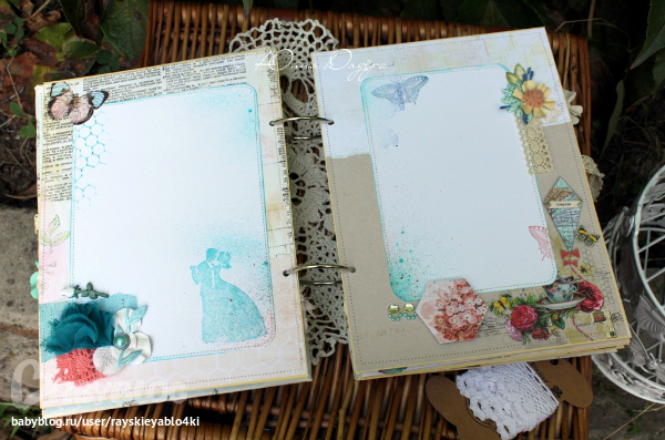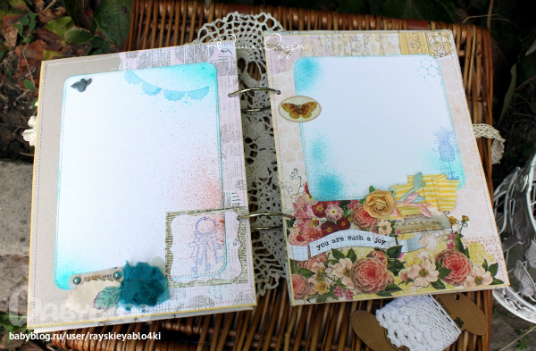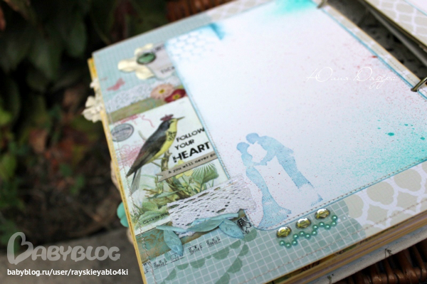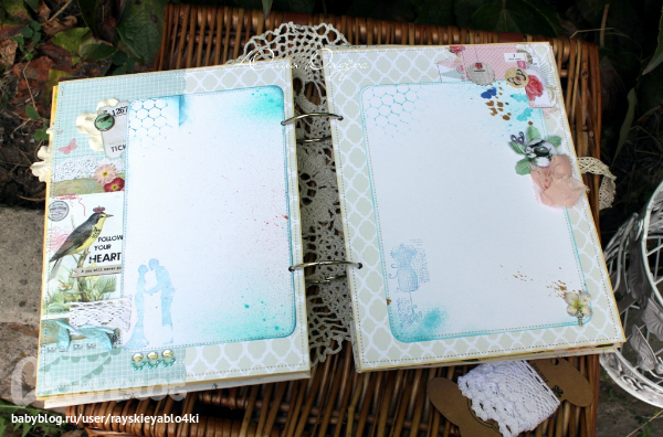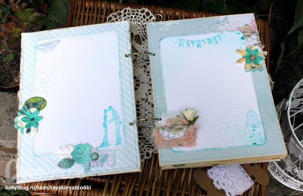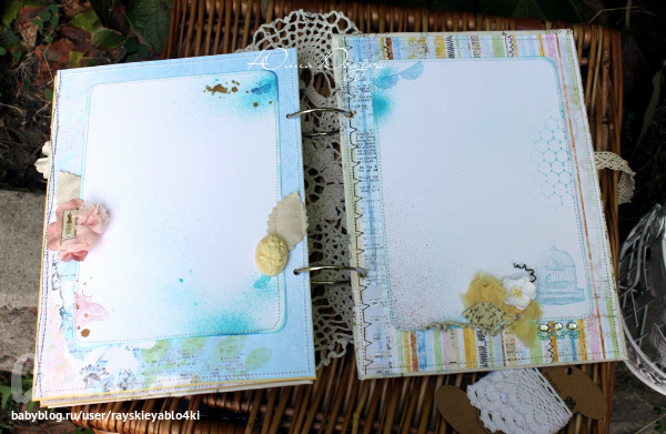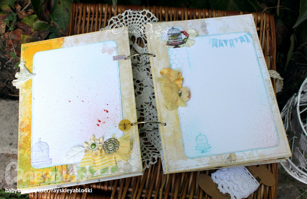Внутри 14 страничек с местом для пожеланий - фактурной бумагой, оформленной спреями, масками и штампами на соответствующую тематику: