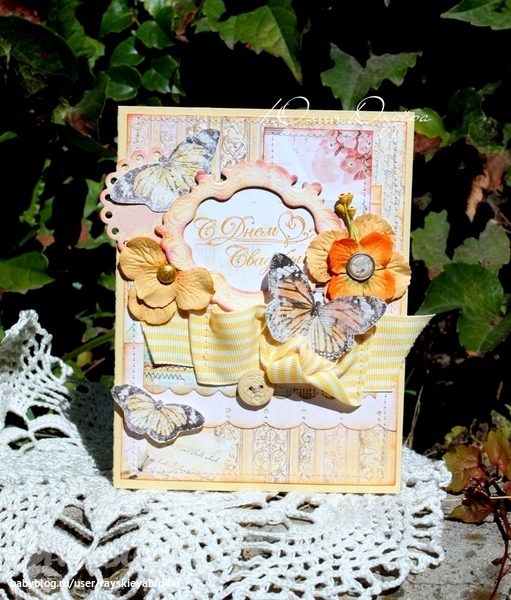 А на вторую свадьбу сделала открытку с конвертом для денежного подарка в цвет букету))