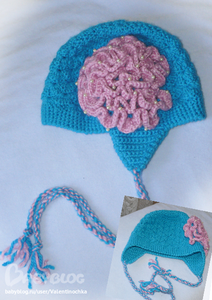 вот отсюда брала http://www.babyblog.ru/community/post/rukodelie/1786022 , а цветок по этому типу http://s30893898787.mirtesen.ru/blog/43474740260/SHapochka-s-bolshim-tsvetkom.-Vyazanie-kryuchkom#42357788006