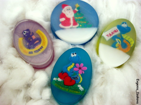 Змейки очень даже хорошенькие!!! Красиво! Жень, я что то понять ни как не могу - мыло с магнитом то как? Измылишь, а потом магнитик останется на холодильник? Объясни деревне...