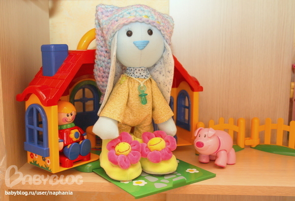 Игрушечный мир - животныеСкромный и милый зайчик. Сшит из фланели, шапочка связана крючком