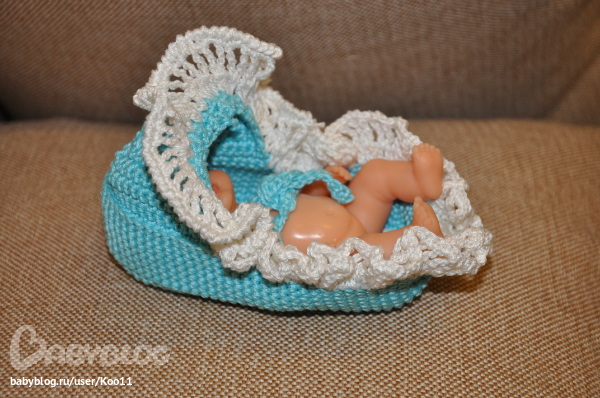 Делать было нечего, дело было утром. И получилась такая люлечка для Лизиной куколки. Еще фото под катом.