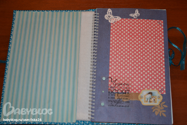 заднюю страничку на картон сделала и приклеила ее к обложке