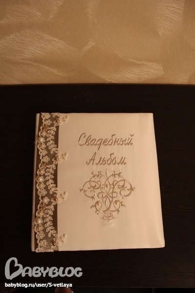Продам или обменяю альбом для свадебных фотографий. Когда заказывала хотела занятся скрапбукингом и сделать себе красивый альбом на память.Но увы( нет фантазии.Заказала себе свадебную фотокнигу а это чудо лежит и пылится. Альбом из плотной матовой бумаги с прослойкой кальки. 30 листов. Обложка мягкая обтянута глянцевой тканью,декорированна вышевкой , бисером, кружевом.