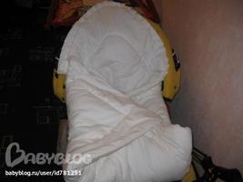 Внутрь вставляется одеялко меньшего размера на прогулки в холодную погоду. Шила на выписку из роддома, а теперь "одеваем" на прогулки.