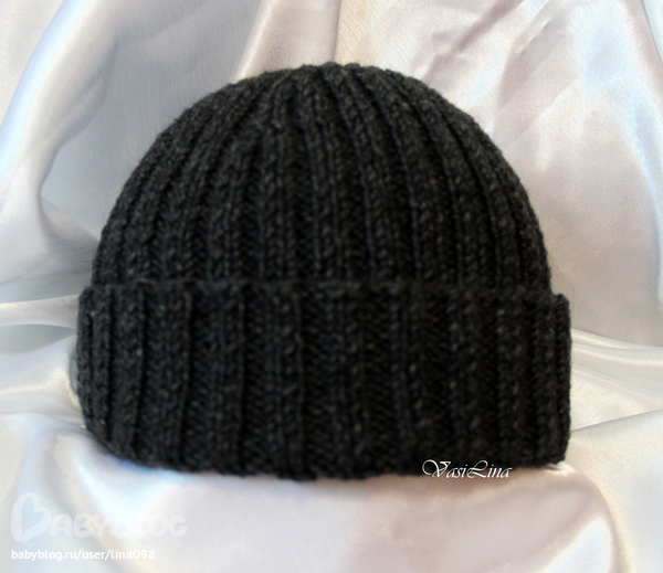 Да тут и описывать нечего: резинка 2х2 вязала сантиметров 10 (это для отворота), затем изнаночными 2 ряда-это линия сгиба. Затем вновь продолжила резинкой. Убавляла в лицевых рядах плавненько...Все просто! Удачи Вам,Наталья!!!