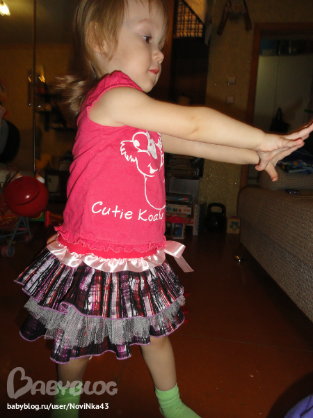 Дочка в восторге от своей, ну и эта ей тоже нравиться. Но понимание уже есть где ее и где чужое, так что померила и спокойно отдала юбку двоюродной сестре.