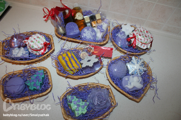 В набор может входить мыло, скрабы, муссы, пралине, бальзам для губ, гидрофильные плитки ассорти, гидрофильное масло для умывания, гели для душа...