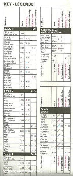 Как это "ничего"? Всё написано) Ниточки используются Дименшенс,естественно)) Первый столбик-название цвета,второй-номер ниток,третий-символ на схеме,вышивается в полный крест,в скобках-количество ниток,во сколько вышивать,четвертый столбик-полукрест. Combined colors-это бленды.Details-это бэк и французские узелки.