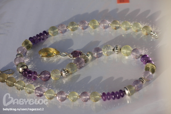 Делала из аметистов двух оттенков ,лимонных топазов,стерлингового серебра.Шикарная подвеска с цитрином и аметистом в серебре.Камушки ювелирной микроогранки,игра невероятная!!!