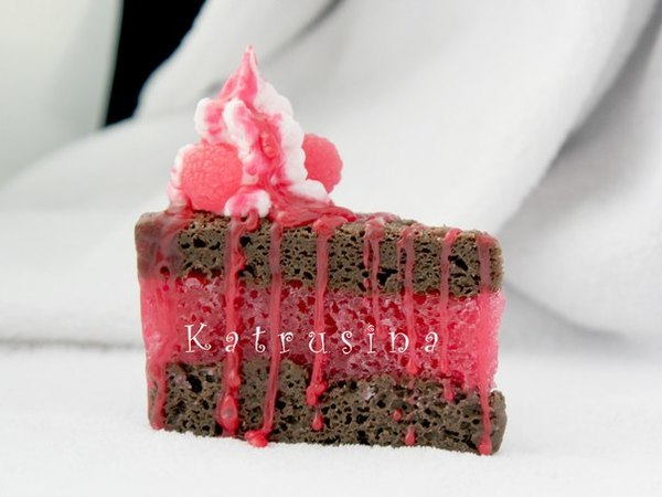 Можете и свою формочку отлить с настоящего кусочка тортика. Нужен компаунд, весы, пластиковый контейнер для отливки и настоящий кусок торта. Я себе сделала сама форму. Можете тут в мастер-классах посмотреть, всё очень понятно показано.