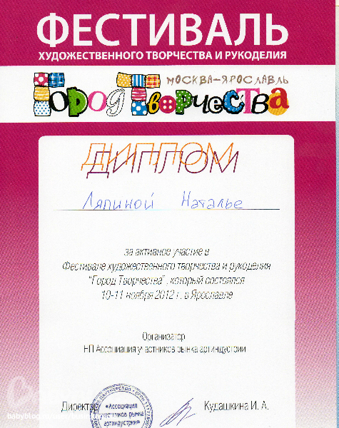 А ещё приятным сюрпризом для меня стало то, что на фестиваль приезжала директор нашего Дворца культуры и предложила мне вести кружок по рукоделию)) сегодня ходила к ней на беседо итогом которой я очень довольна!!!