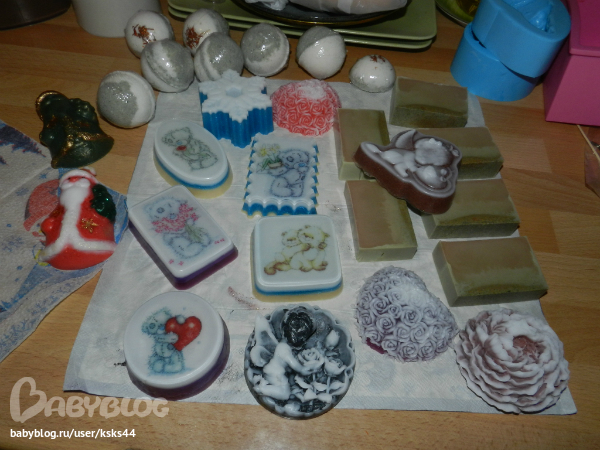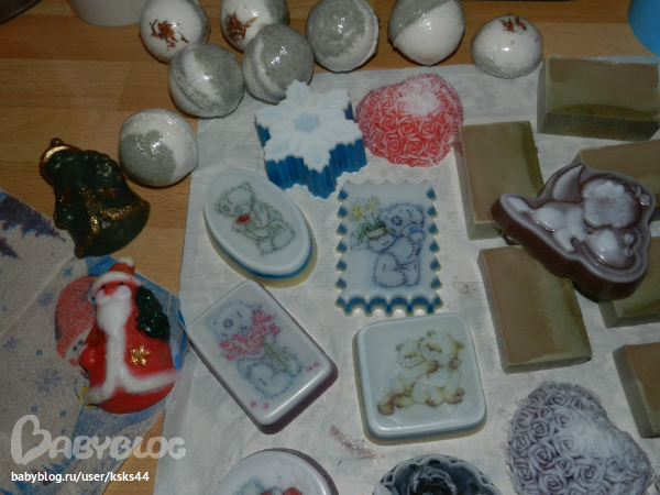 Мыло и косметика своими рукамиГлядя на ваши работы, девоньки, у меня тоже ручки зачесались! И вот все выходные у меня были заняты не уборкой и готовкой (бедный ребенок!))), а варением мыла, лепкой бомбочек и еще между делом декупажить ухитрялась!!! Вообщем полный абзац!