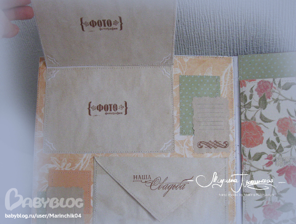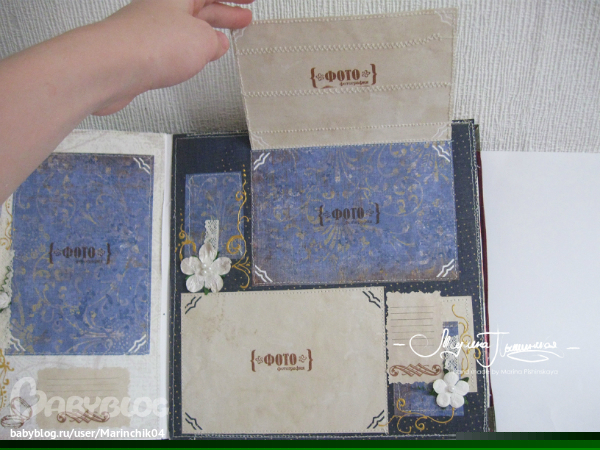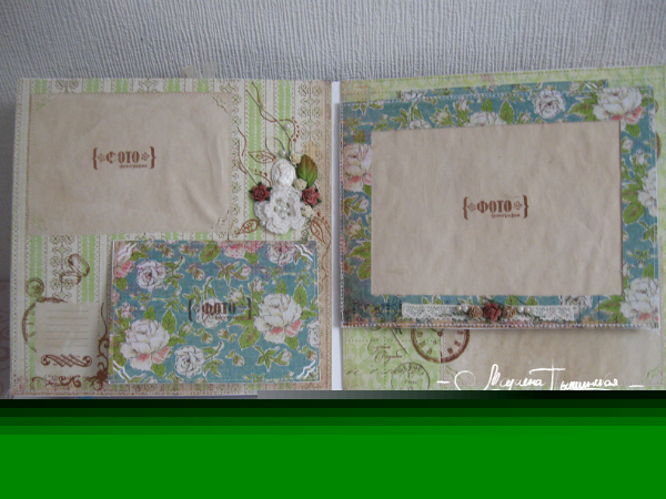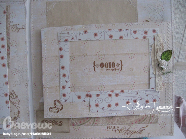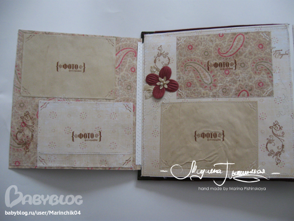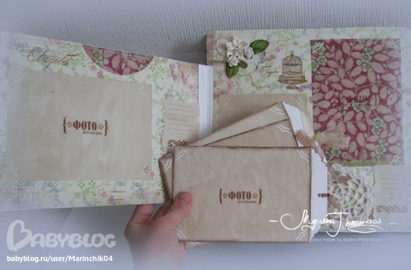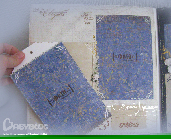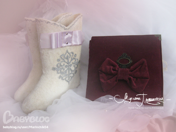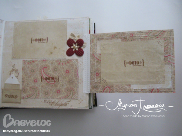 Свадебный альбом делался в подарок на свадьбу друзьям, 7 разворотов вмещают около 50 фото разных форматов, т.к. наши сибирские зимы суровые, в комплект еще и свадебные валеночки))