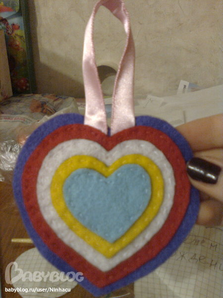 Пока шила это, у подруги внезапно случился День рождения, и мне еще случайнее захотелось сшить для нее сердечко-открытку. Оно пробыло у меня совсем недолго, поэтому нормально не сфотографировалось...