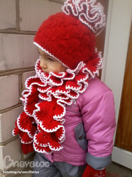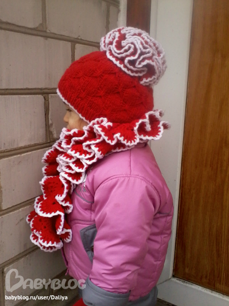 пряжа- Ярн Арт Каризма- 80% шерсть, 20% акрил 200м в 100г для шапки верхней и шарфа, нижняя шапка и белая отделка детский акрил Ярн Арт Бэби