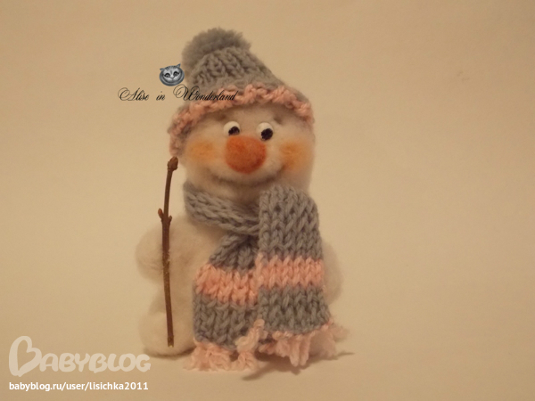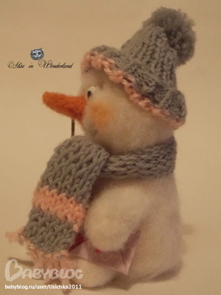 Фелтинг (валяние шерсти)Очень добрый Снеговичёк-Почтовичёк подарит Вам настоящую Новогоднюю сказку) Всегда носит с собой конвертик и свою любимую тросточку, которую нашёл в волшебном лесу.