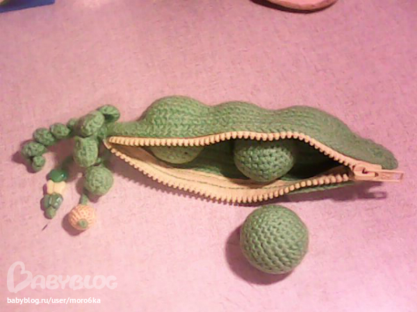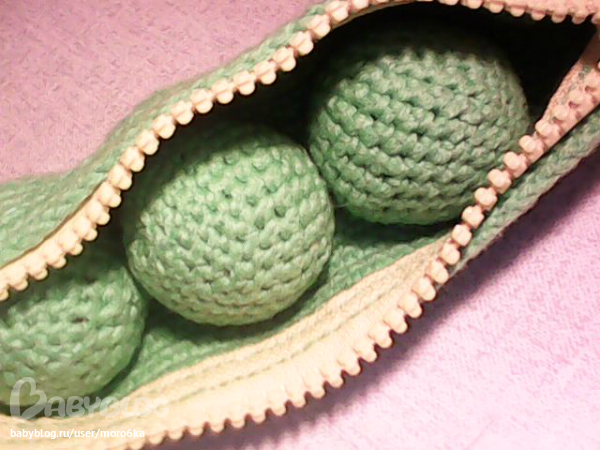)))) очень приятно что вам так понравилось!) Схемки к сожалению нет, ибо вязала я на глаз. Вяжите 2 трапеции столбиком без накида, потом сшиваете вместе и встрачиваете молнию - это сам стручок. Ну а горошины в моём варианте - обвязанные погремушки с разными наполнителями. как-то так)