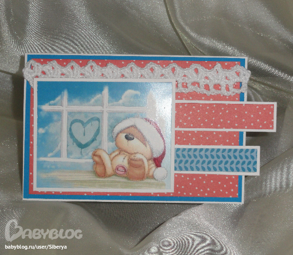 Снежинку вязала крючком, как и кружево на следующей открытке