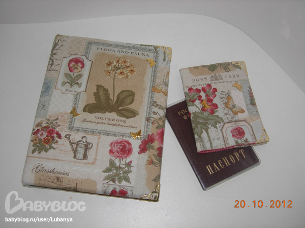 СкрапбукингЯ уже давно обещала маме сделать ей блокнот, но было одно НО мама всегда глядя на мою очередную работу, говорит "Писать в таком жалко", поэтому, чтобы ей было не жалко и блокнот радовал ее долго, взяла за основу тетрадь со сменными блоками. Ну и обложка для паспорта получилась в комплект, уже очень мне с этой тканью понравилось работать. Ткань настолько интересная сама по себе, что добавила минимум доп элементов - блестящие бабочки и уголки. Мама осталась довольна :)