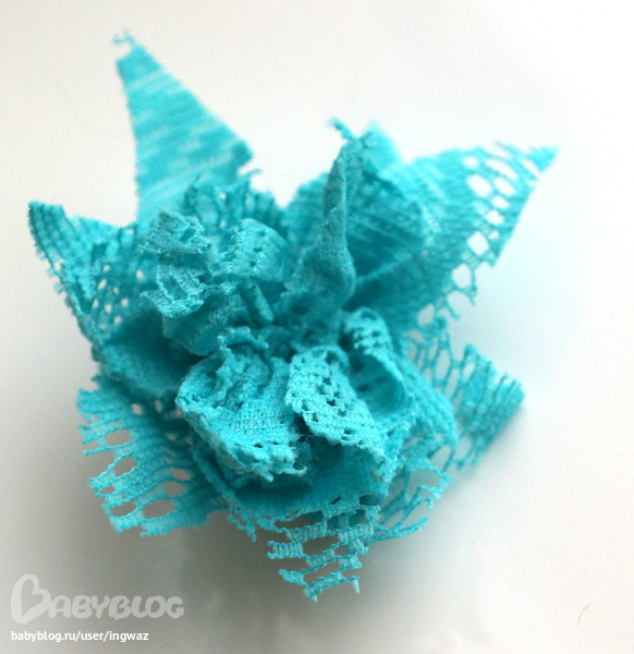 И пока самый любимый цветок из трикотажа, сердцевиа которого сплетена из голубого и красного агата: