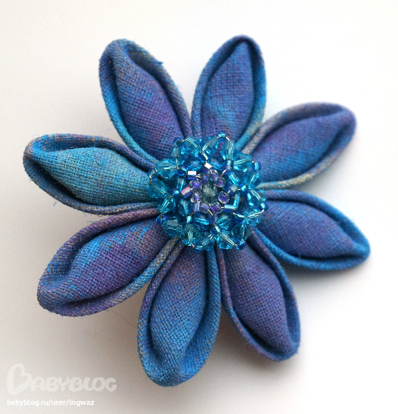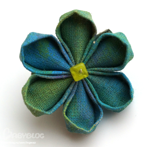 Спасибо девушкам, которые подсказали мне, что начинать канзаши надо с нескользких тканей! Холщевая ткань, пропитанная акрилом, слушается рук намного проще, чем атлас.