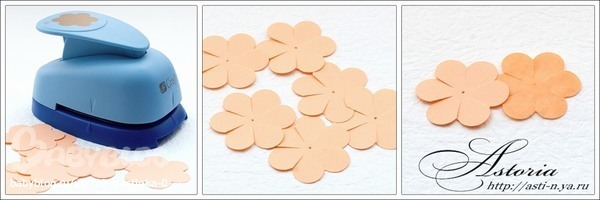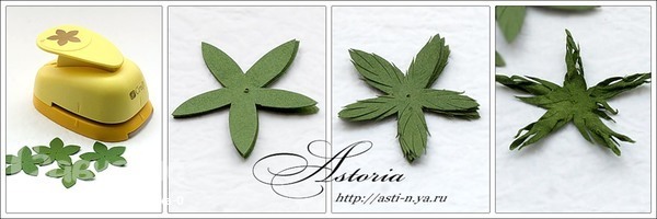 Итак, бумагу нарезать, проколоть отверстия шилом и надрезать лепестки. Бумагу увлажнить, чтобы она стала мягкой. На фото с левой стороны для наглядности сухая деталь и влажная.