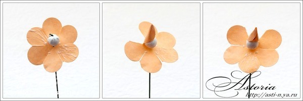 Приклеиваем лепестки друг на друга, создавая конус. Образовавшиеся уголки у основания примять.