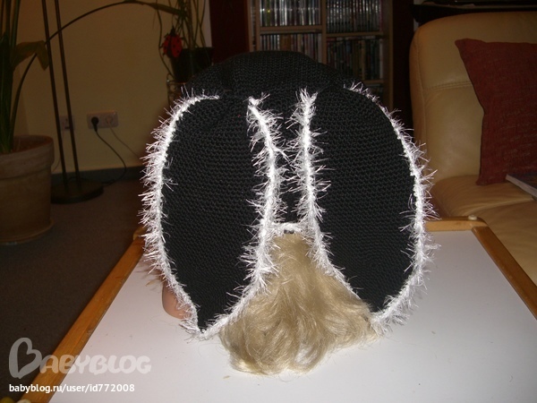 Попросила меня девочка моего сына связать для неё шапочу-зайку.И вот что у нас получилось.
