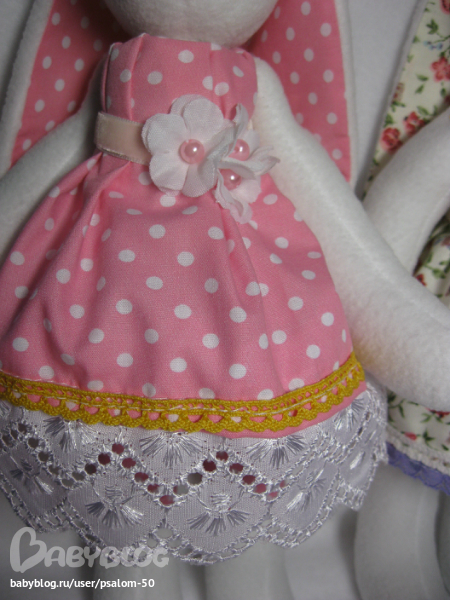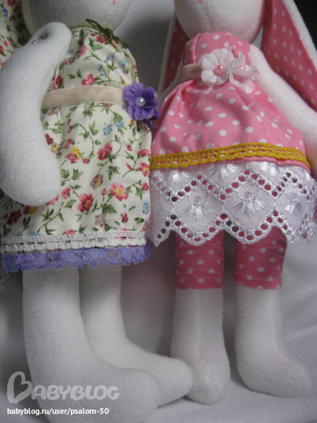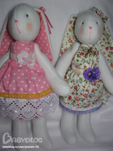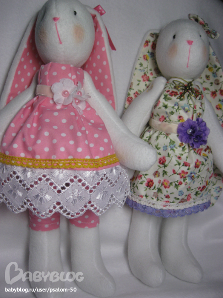 Зайки сшиты на заказ.В розовом для дочи-она любит все розовенькое)) и для мамы в цветочек.Зайки 30 см.